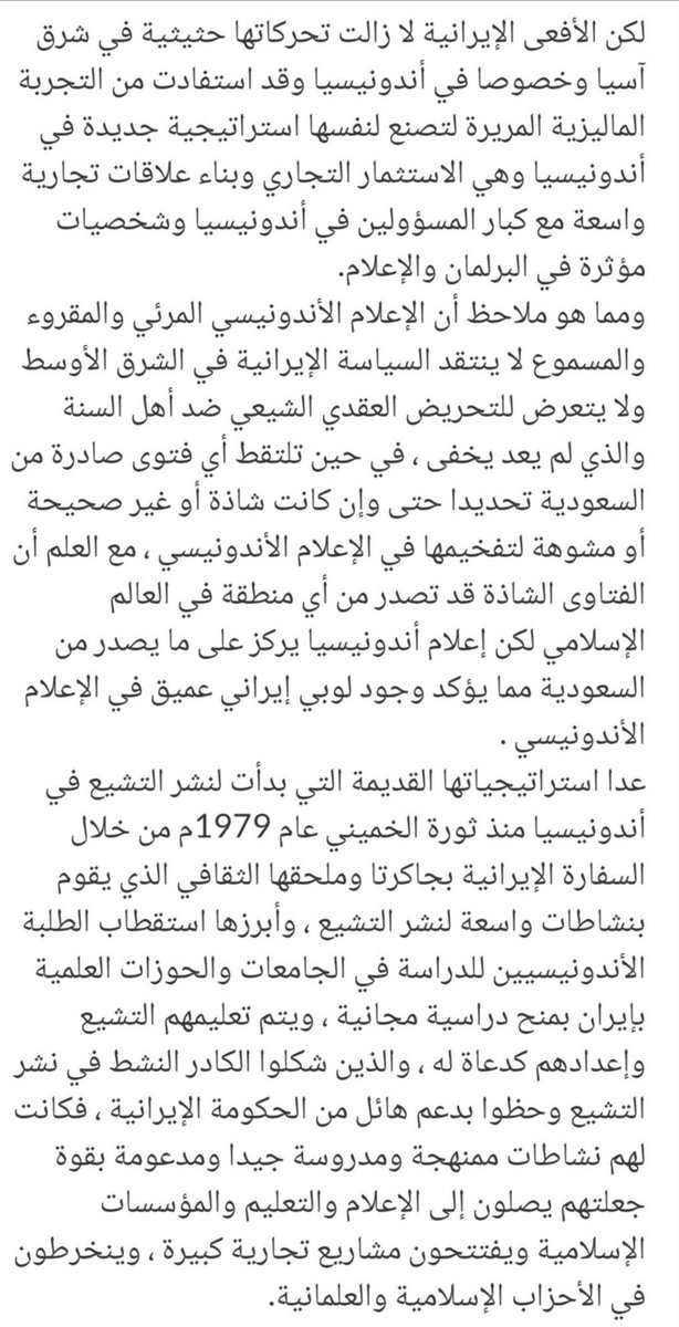 8-وما يردده البعض من خلايا #التنظيم من اليمن والحوثيين انهم نشروا الاسلام في جنوب شرق آسيا دون غيرهم في حقيقته تضليل استغله #م_إبران في اختراق اكبر بلد إسلامي بإستغلال الفقراء وتشيعهم والعمل على طمس. الجذور الإسلامية العربية #أندونيسيا و تحريضهم