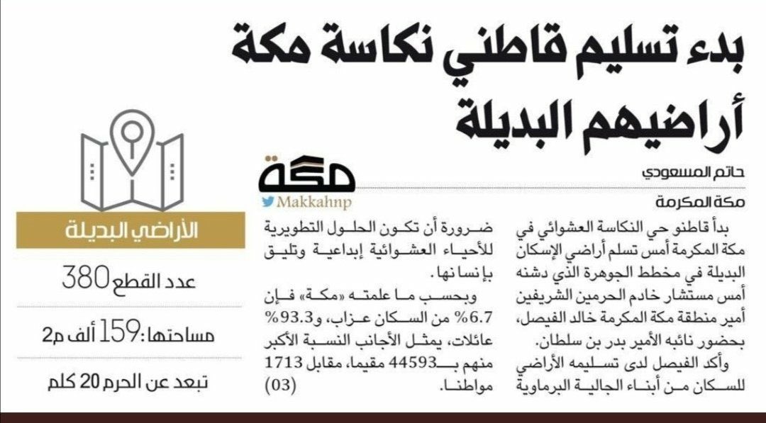 (بدء تسليم قاطني نكاسة مكة أراضيهم البديلة)؟