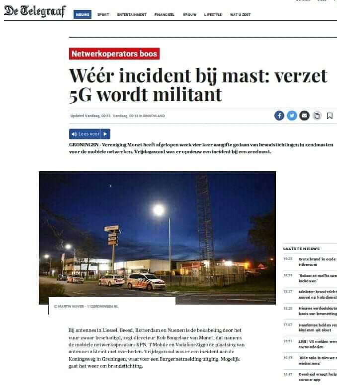 خلفاً لما حدث في المملكة المتحدة ، متظاهرون في #هولندا يُدمرون ويحرقون أبراج الاتصالات للـ 5G بسبب اعتقادهم أن لها علاقة بـ #فيروس_كورونا !