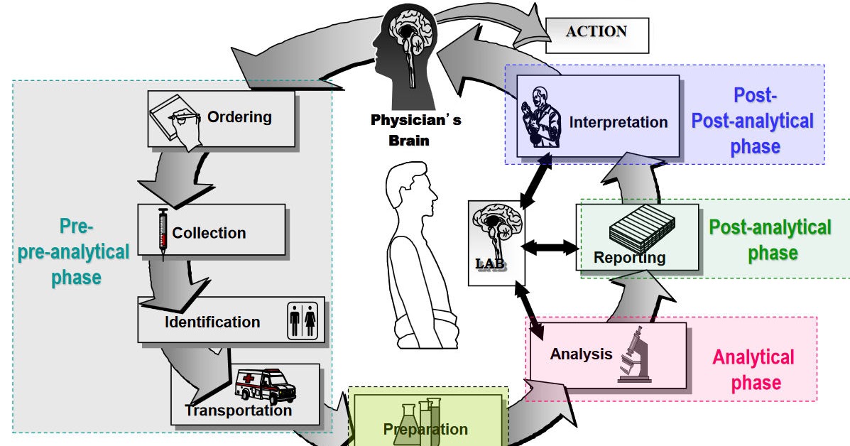 👌قسّم العلماء والمهتمين مراحل التحاليل الطبيه إلى ٣ مراحل أساسيه وذلك ليسهل عليهم معرفة أين حدث الخطأ ومن ثم إصلاح هذا الخطأ للوصول إلى نسبة خطأ 0% ويتحقق المعنى الفعلي للجودة👌
