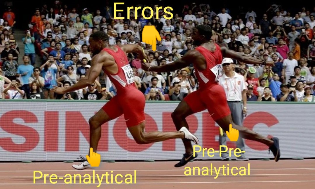 🤚(أخطاء؛ تحديد نوع الإختبار، معلومات المريض، جمع العينه، تحضير ونقل العينه ⬅️ تعتبر Pre-Pre-analytical)