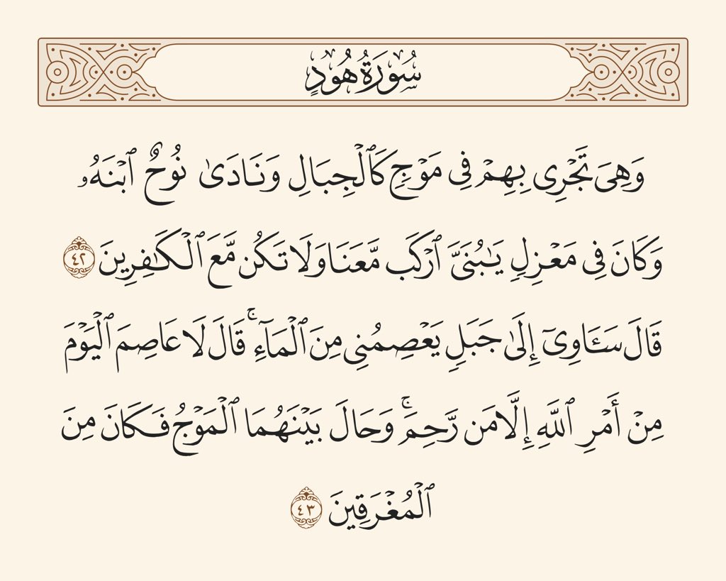 ﴿وَاصنَعِ الفُلكَ بِأَعيُنِنا وَوَحيِنا وَلا تُخاطِبني فِي الَّذينَ ظَلَموا إِنَّهُم مُغرَقونَ﴾ [هود: ٣٧]