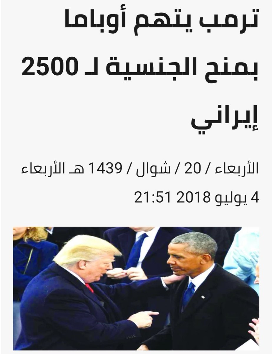 2-اتهام #ترامب الرئيس السابق اوباما منح الجنسية 2500ايراني بينهم مسؤلين س. أعضاء بالحرس الثوري يعني #فساد_التجنيس امتد لأكبر دولةUSA مع #م_إيران و #التنظيم الذي اخترق دولا منذ عقود؟!