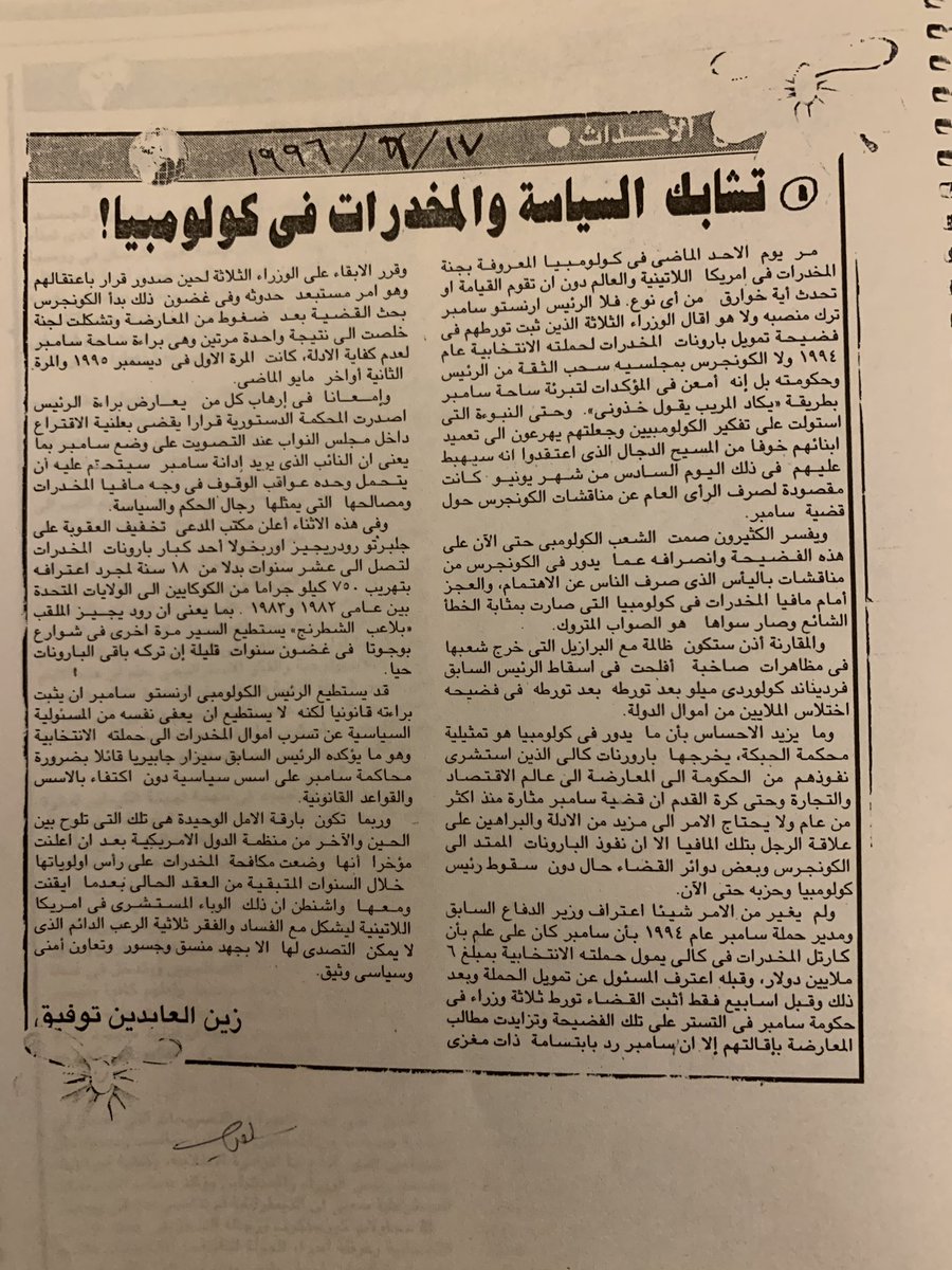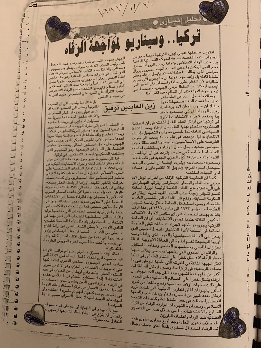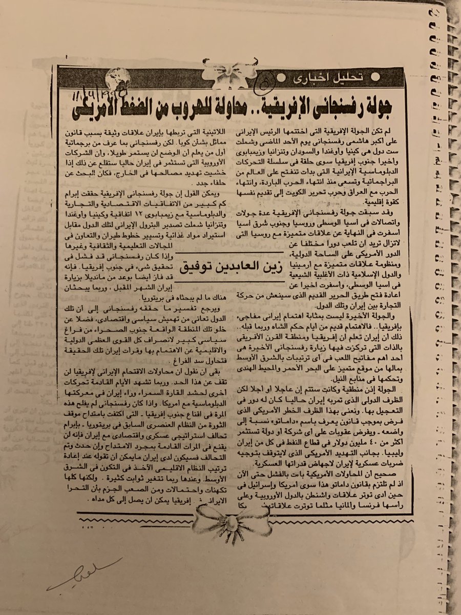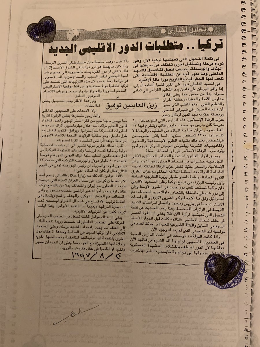 ٣- فكانت رئيسة القسم الخارجي بالأهرام آنذاك ووقعت على الملف من باب التوثيق. طبعًا كل مقال من هذه المقالات سبقه بحث وقراءة لمدة أسبوع على الأقل وزيارة يومية لمكتبة الأهرام الضخمة والبحث كان يدوي في المكتبة لأن الأخ غوغل ما كانش لسه شرف.