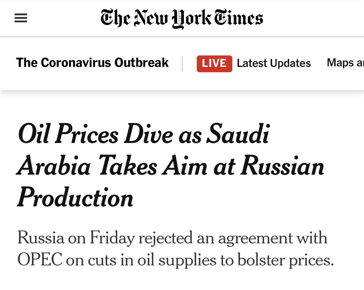 خارج #أوبك، الاميركيون، يستغلون الوضع ويزيدون إنتاجهم. #روسيا، انسحبت من الاتفاق ورفعت إنتاجها. قررت الرياض أن تنتج حصتها كاملة ما أشعل الجدل