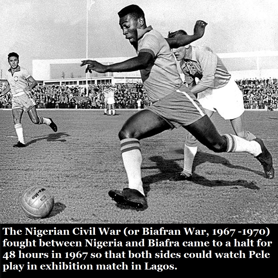 في عام 1967، سافر فريق سانتوس البرازيلي إلى نيجيريا للمشاركة في بطولة كرة قدم دولية، وكان يضم في صفوفه آنذاك الأسطورة بيليه. ولسوء الحظ كانت نيجيريا تعيش آنذاك حرباً أهلية وكان من الصعب إقامة مباراة كرة قدم بحضور الجماهير