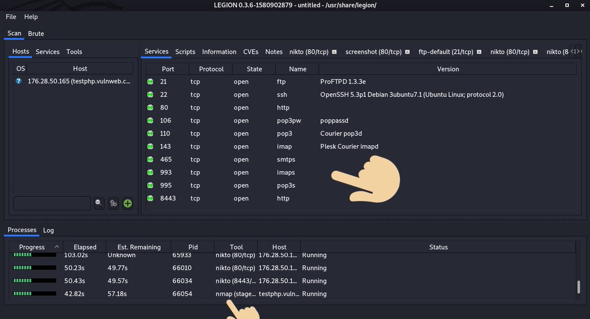 1- فحص تلقائي باستخدام NMAP و whataweb و nikto و Vulners و Hydra و SMBenum و dirbuster و sslyzer و webslayer والمزيد (مع ما يقرب من 100 سكربت مجدولة تلقائيًا)