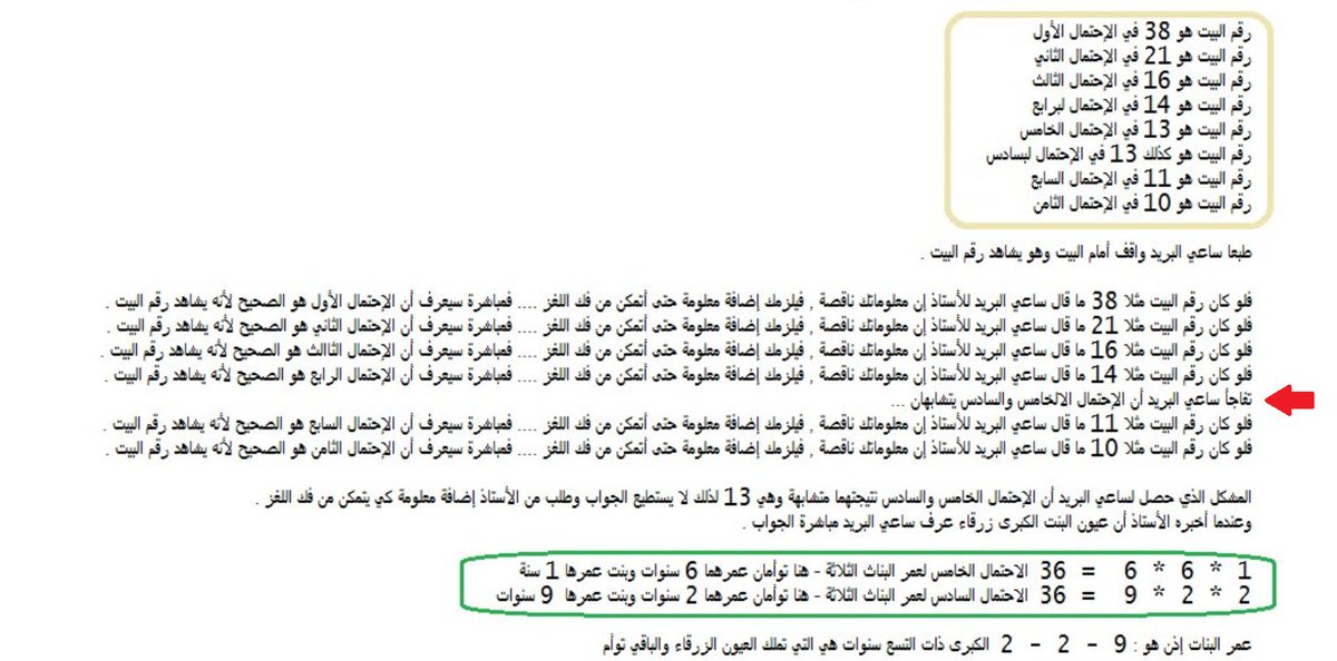 6⃣2⃣ لغز ساعي البريد الذي طرحته مازال البعض يُعاني من عدم فهمه لهذه الأطروحة , كيف توصلنا إلى رقم البيت ؟