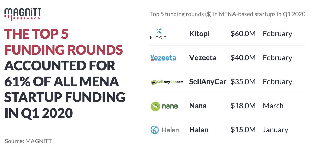 أظهرت النتائج أن 108 صفقات لمشاريع ناشئة جذبت إستثمارات قدرها 277 مليون دولار خلال الربع الأول من 2020