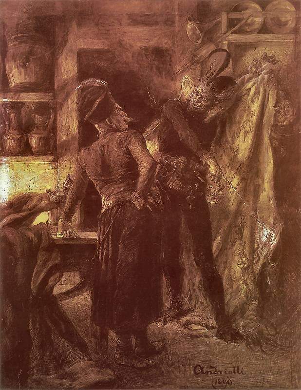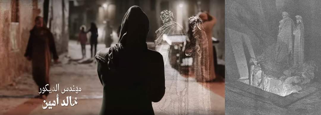 أول صورة من تتر المسلسل، بنلاحظ اول حاجة وجود دانتى أليجييرى بيبص في ترقب وخوف