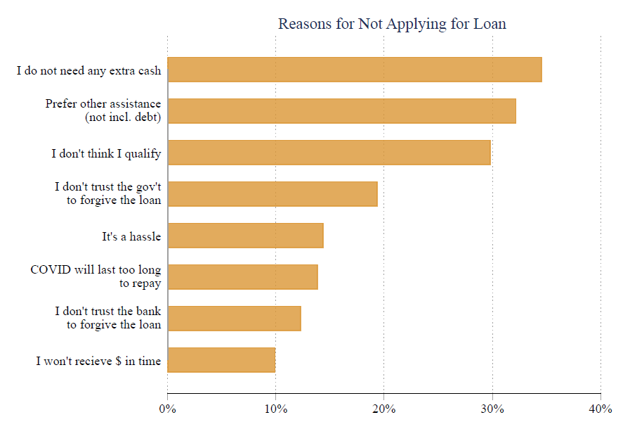 8. ومن أهم ما جاء في الدراسة أن إذا استفادت الشركات الصغيرة من الحوافز الحكومية فإنها تتوقع أن تفصل 6% من موظفيها قبل نهاية السنة مقارنة بـ40% إذا لم تحصل على الدعم الحكومي.