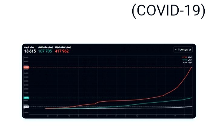 الرسومات البيانية التي عرضناها عليكم هي في شهر مارس اي في بداية تفشي هذا الوباء علي مستوي العالم بمعني ان الحالات التي تظهر علي الرسم البياني اقل من ربع العدد الحالي للإصابات وحالات التعافي والوفاة !!!!؟؟؟؟