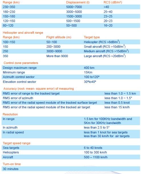 رادار فرا افق نگر ساحلیPodsolnukh روسیه توانایی کشف محل ناو و هواپیما تا حداکثر برد ۵۰۰ کیلومتر داراست ، نمونه صادراتی حداکثر برد ۳۰۰ کیلومتر است.