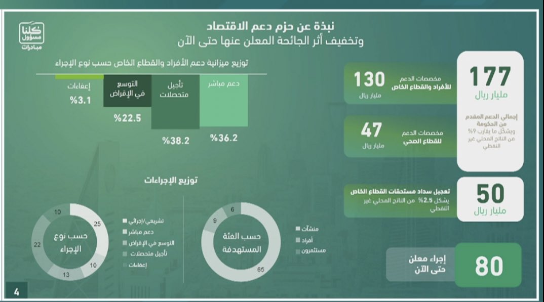 - 130 مليار مخصصات دعم الافراد والقطاع الخاص وتوفير التغطية لأكثر من 1.2 مليون سعودي يعمل في القطاع الخاص