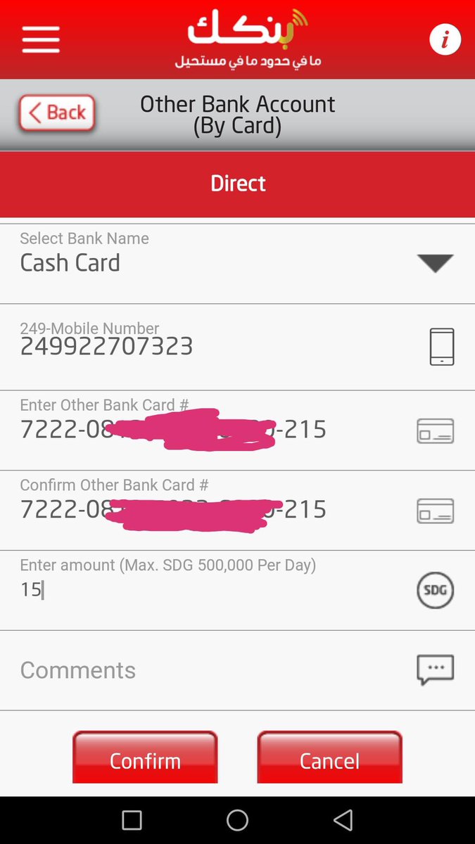 لو عايز تغذي بطاقة سايبر اللي عملتها دي من بنك الخرطوم (مثلا):