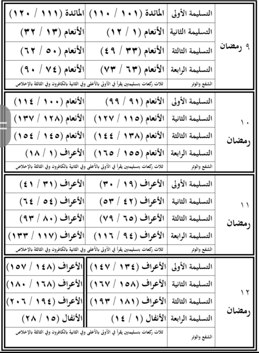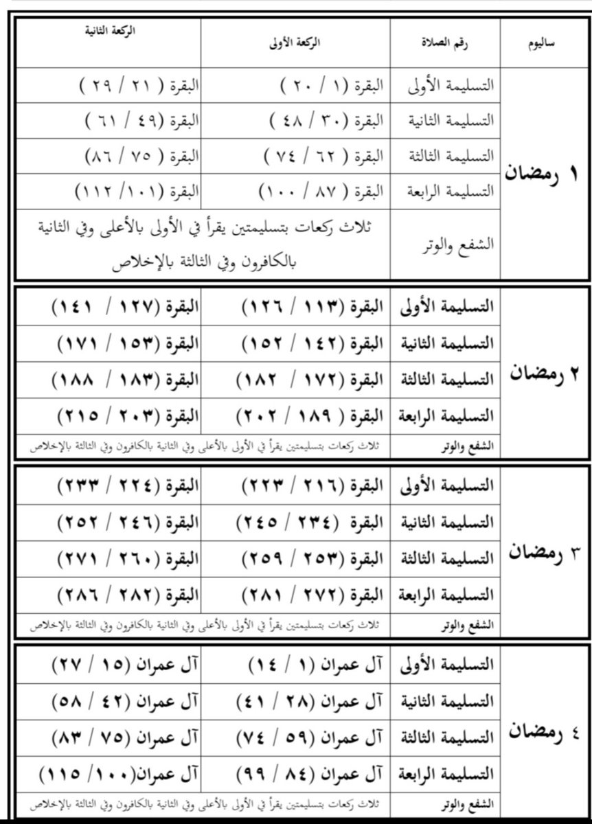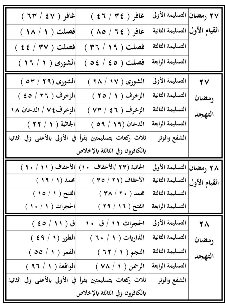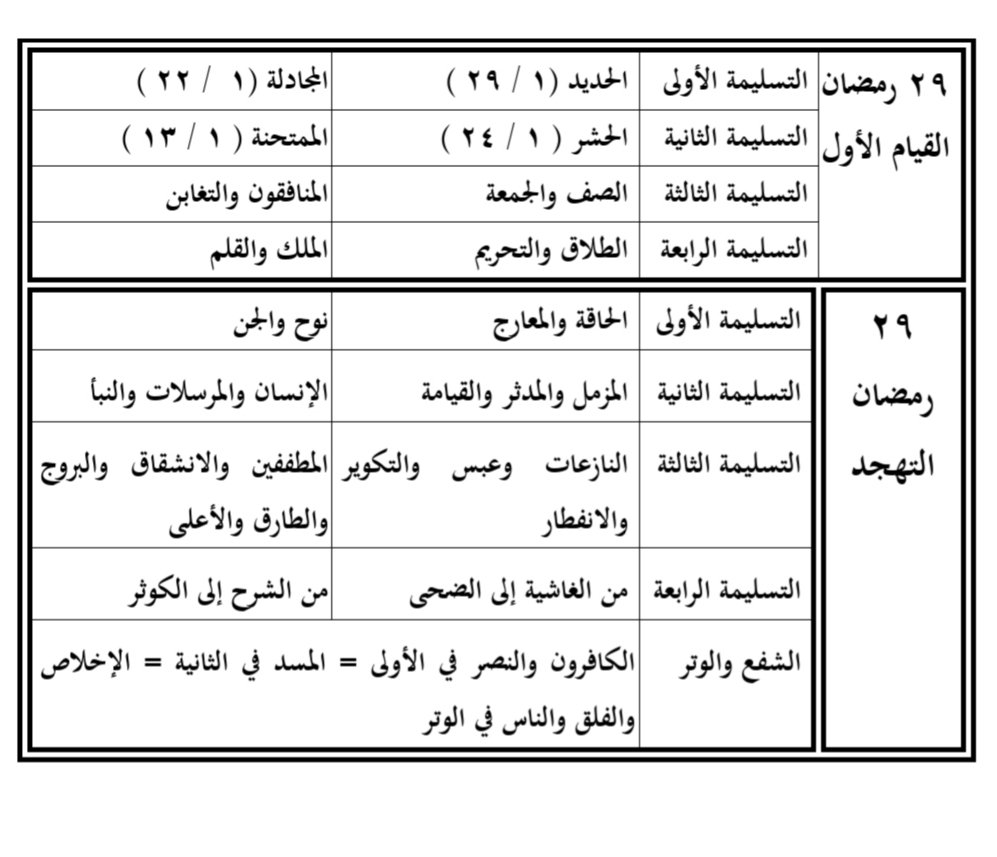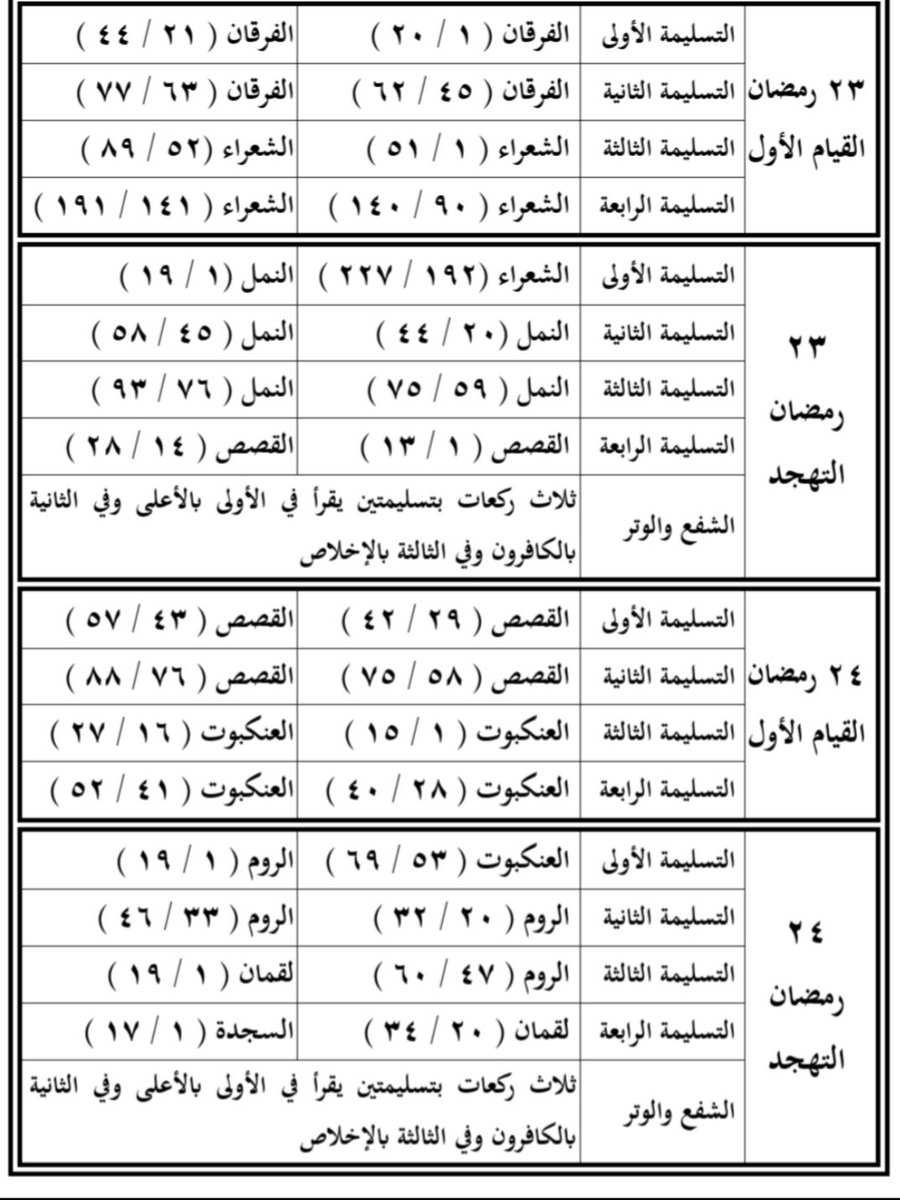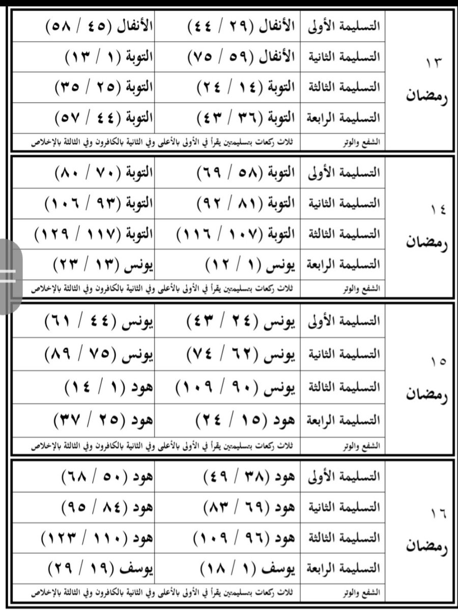 أحد مشايخي من معلمي القرآن في #الأفلاج أرسل لي جدولا لصلاة التراويح ..