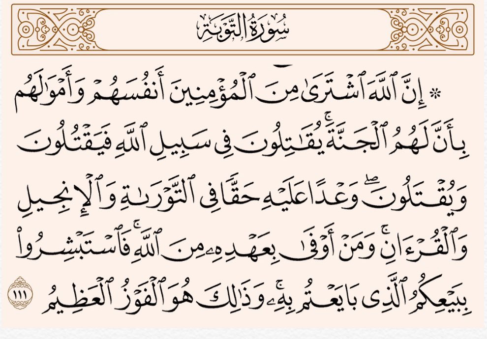 ورد ذكر القرآن في هذه الآية مرتبطاً بذكر القتال، وهذا لأن سورة التوبة جاءت تتحدث عن القتال.