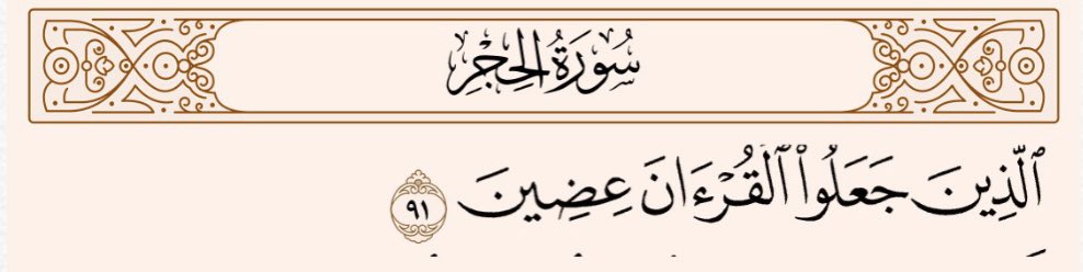 الورود الثالث والأخير للقرآن في سورة الحِجْر، والآية تعيب على الذين قطّعوا أوصال القرآن، ولم يعتبروه رسالة إلهية واحدة.
