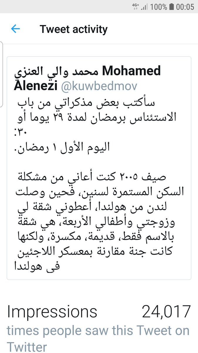 كنت قد خططت اليوم للحديث عن بعض ذكرياتي في هولندا والقصد كما قلت هو الاستئناس و أخذ العبر، لكنني طوال اليوم وأنا أقرأ مآسي البدون ومعاناتهم، فرأيتني في حرج أن أكتب، فالناس تعاني وأنا أسرد قصصا، قد يبدو فيه شيء من عدم الإحساس بالآخرين، فرأيت أن أمسك عن الكتابة.