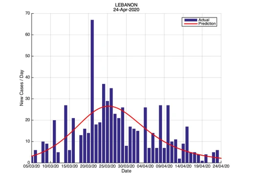 وكانت ثاني دولة عربيه سيختفي منها الوباء بحول الله و قوته هي #لبنان ، اذ تقول الدراسة بان الوباء اختفى من لبنان بتاريخ 22 ابريل. حسب الصورة المرفقة.