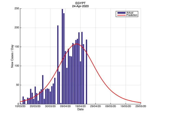 واما عن #مصر، فقد اظهر التقرير انقضاء فتره ذروة الفيروس بمصر بالفعل، وستنتهي الازمه بتاريخ 20 مايو من الشهر القادم بإذن الله تعالى
