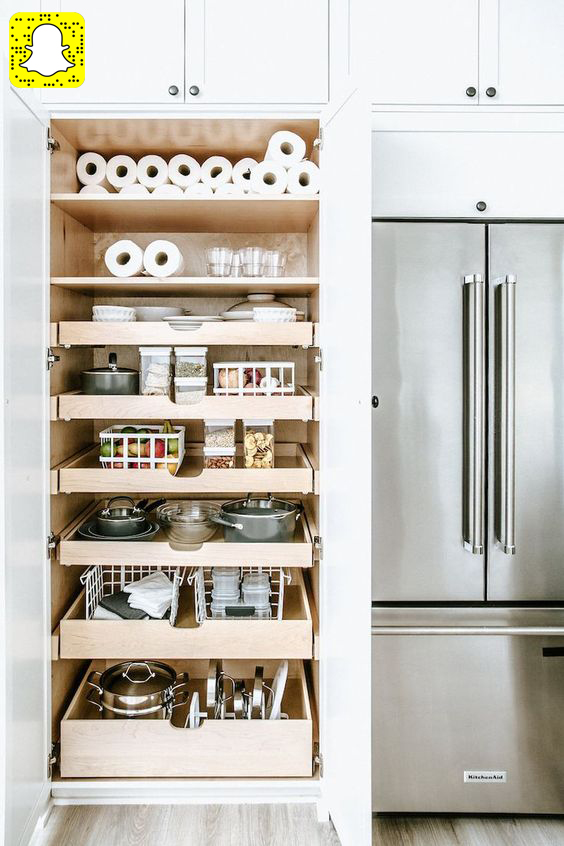 استخدام تجهيزات وأفكار لتخصيص الاماكن والرفوف بشكل محدد ويسهل الوصول لجميع العناصر بالمطبخ