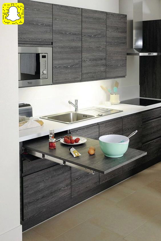 الاستفادة من الاستخدامات المتعددة للعناصر والأفكار لتوفير مساحات اضافية مثل رف للتحضير بالمطبخ