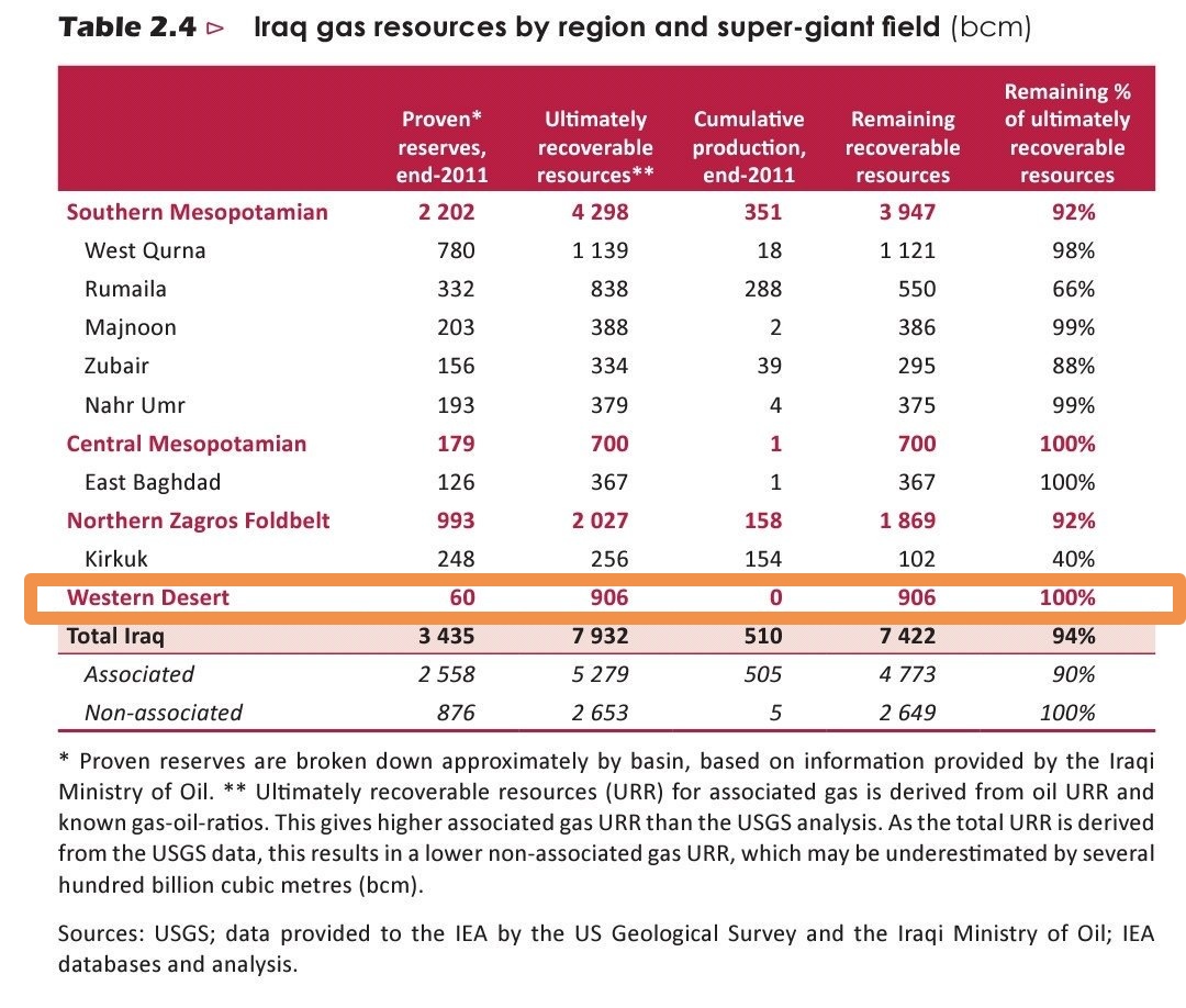 ?احتياطي العراق لعام٢٠١٩~٢٠٢٠من الغاز ٣.٦تريليون م٣ من كامل احتياطي العالم البالغ ١٧٩تريليون م٣(اي ١.٨٪ نسبة احتياطي العراق منه)