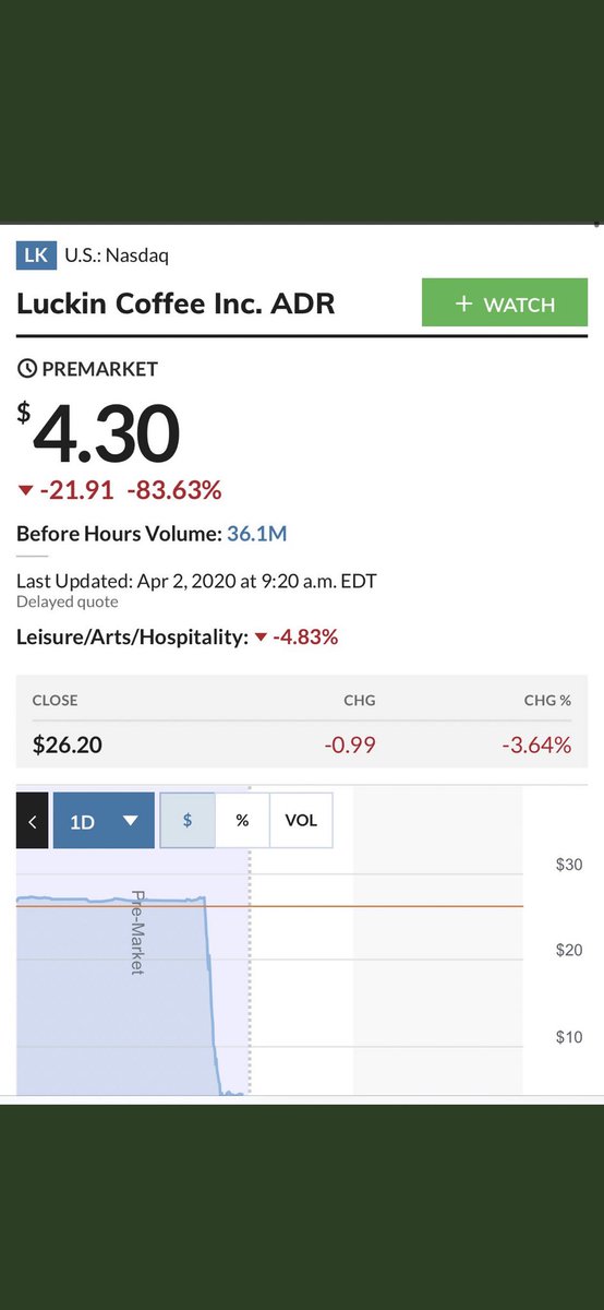 طبعًا مؤسس منافستهم @CitronResearch السيد Andrew Left أعلن على غير العادة بأنه داعم لـLuckin وأنه غير مقتنع بالتقرير