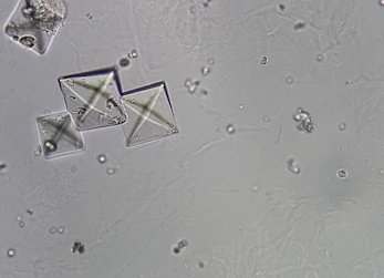 ... وممكن تشوف كريستال ممكن Mucous... طبعاً بمعدلات طبيعيه ممكن تكون العينه مافيها مشكله ولكن إذا وجدت هذه العناصر بكميات كبيره نسجل النتيجه وهذي دلاله ان فيه مشكله..