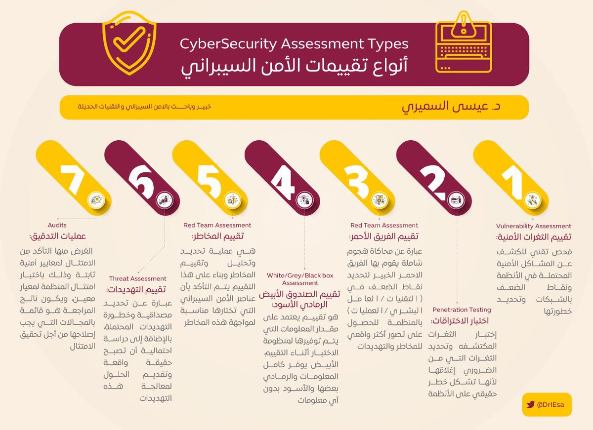 تحت هذه التغريدة اختصر لكم أنواع تقييمات #الامن_السيبراني