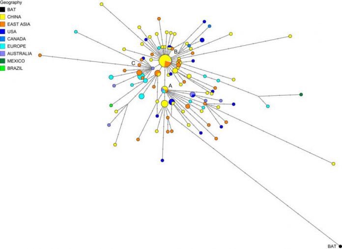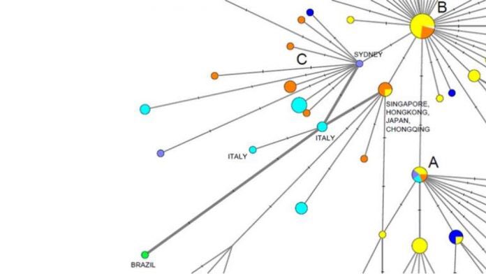 أدت A إلى ظهور B ، والتي كانت سائدة في المرضى من ووهان ، وكذلك في معظم الصين وشرق آسيا. ثم تحور النوع B لإنشاء النوع C