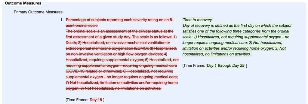 كانت الامانة العلمية تقتضي من د.فوشي توضيح ماحدث مع عرض تفسير مقنع لسبب تعيير ال primary outcome في المؤتمر الصحفي (21)