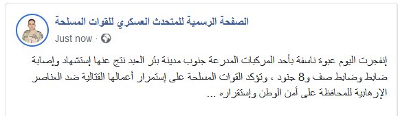 إثر إنفجار عبوة ناسفة بأحد المركبات المدرعة جنوب مدينة بئر العبد بشمال سيناء والتي أدت إلي إستشهاده واستشهاد صف ضابط و 8 جنود اليوم الخميس 30 إبريل 2020 #لن_ننساكم #عظم_شهيدك
