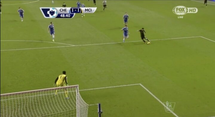 "عندما استلمت الكرة، أفلتُ من الرقابة وسلمتها لماريو [بالوتيلي] الذي احتفظ بها لكنه سقط وسلمها لي وهو على الأرض ولذلك لم يكن تصويبها مباشرةً أمرًا سهلًا. أخذت لمسة ثم اعتقدت أن المدافع سيضربني فبحثت عن ركلة الجزاء لكن ضربته لم تكن قوية بما فيه الكفاية لإيقاعي."