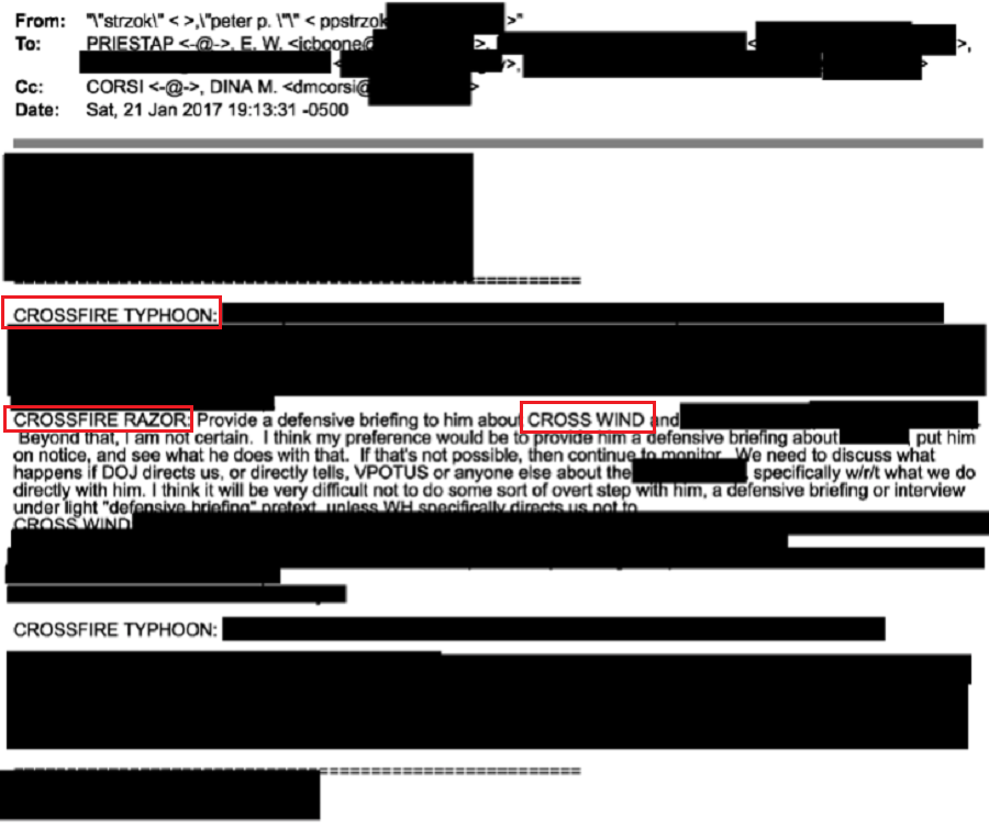 13) More info on the Crossfire Razor investigation and how Peter Strzok kept it open.
