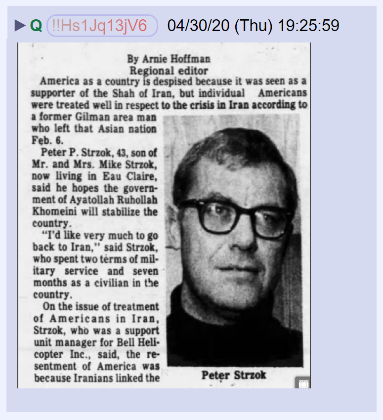 60) The Strzok family has deep ties to Iran and has favorable views of the nation.
