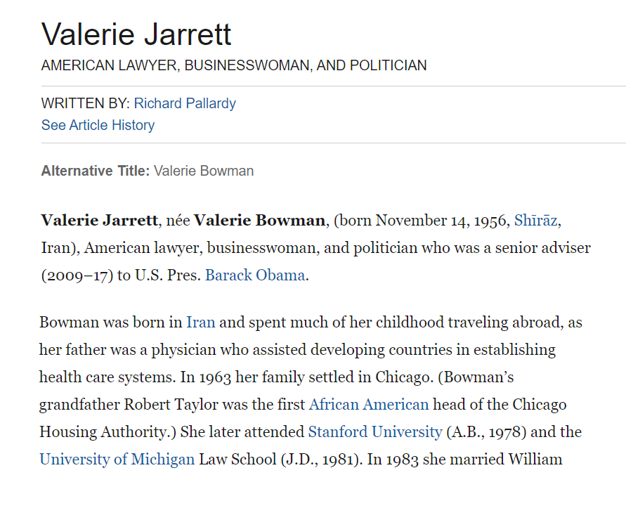 62) Barack Obama's handler, Valerie Jarrett, was born in Shīrāz, Iran.