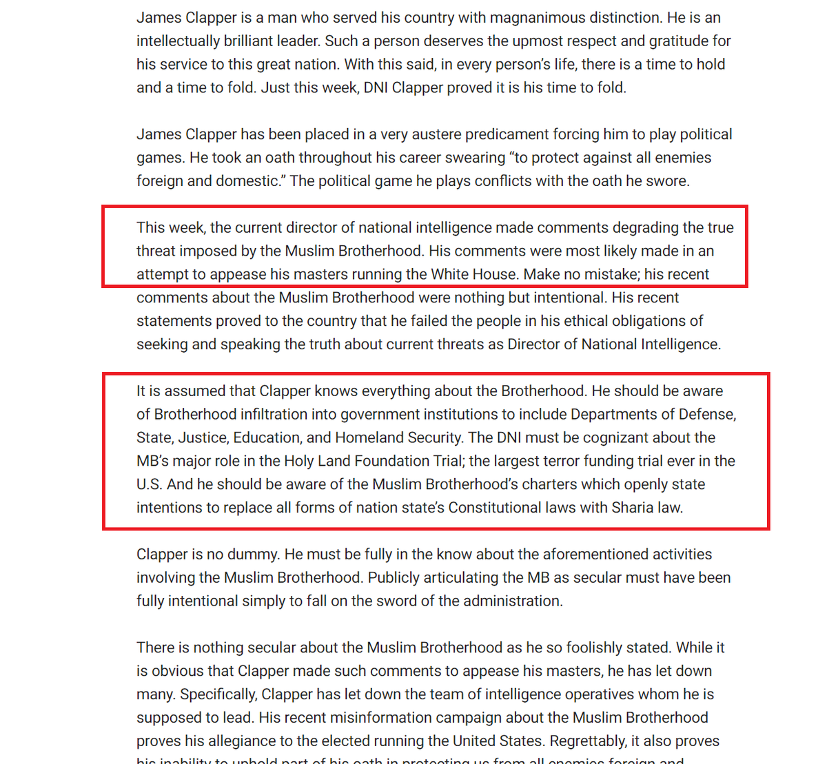 80) Why would Barack Obama's Director of National intelligence downplay the seriousness of the Muslim Brotherhood's infiltration of the U.S. government?