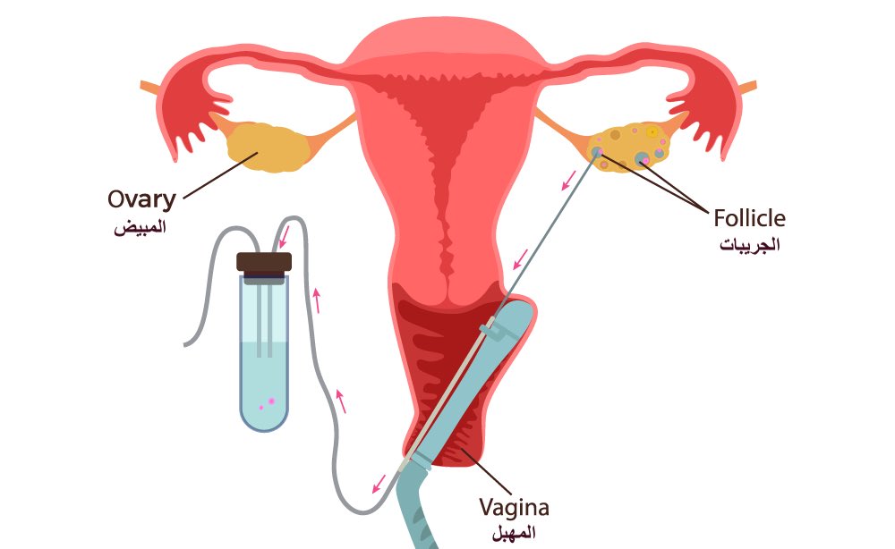 يتم تحفيز المبايض لتنمية جريبات عديده فيهما ليتم سحبها خلال العملية (حيث تحتوي هذه الجريبات على البويضات)