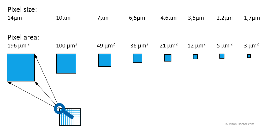 كلما زاد حجم النقطة الضوئية زادت قدرتها على جمع أكبر قدر من المعلومات والإضاءة ويؤثر ذلك على جودة الصورة