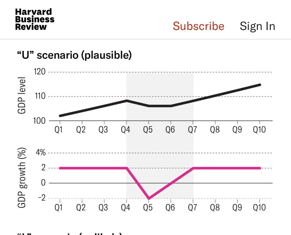 توقعات جامعه هارفارد لتعافي الإقتصاد الأمريكي من أزمة فايروس #كورونا بإحتمالية مبنية على ثلاث سيناريوات وثلاث أشكال بيانية (U), (V), (L).. 3️⃣ #COVID19 #كوفيد_19