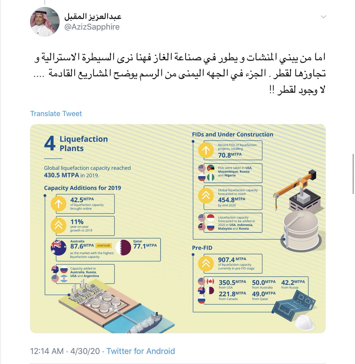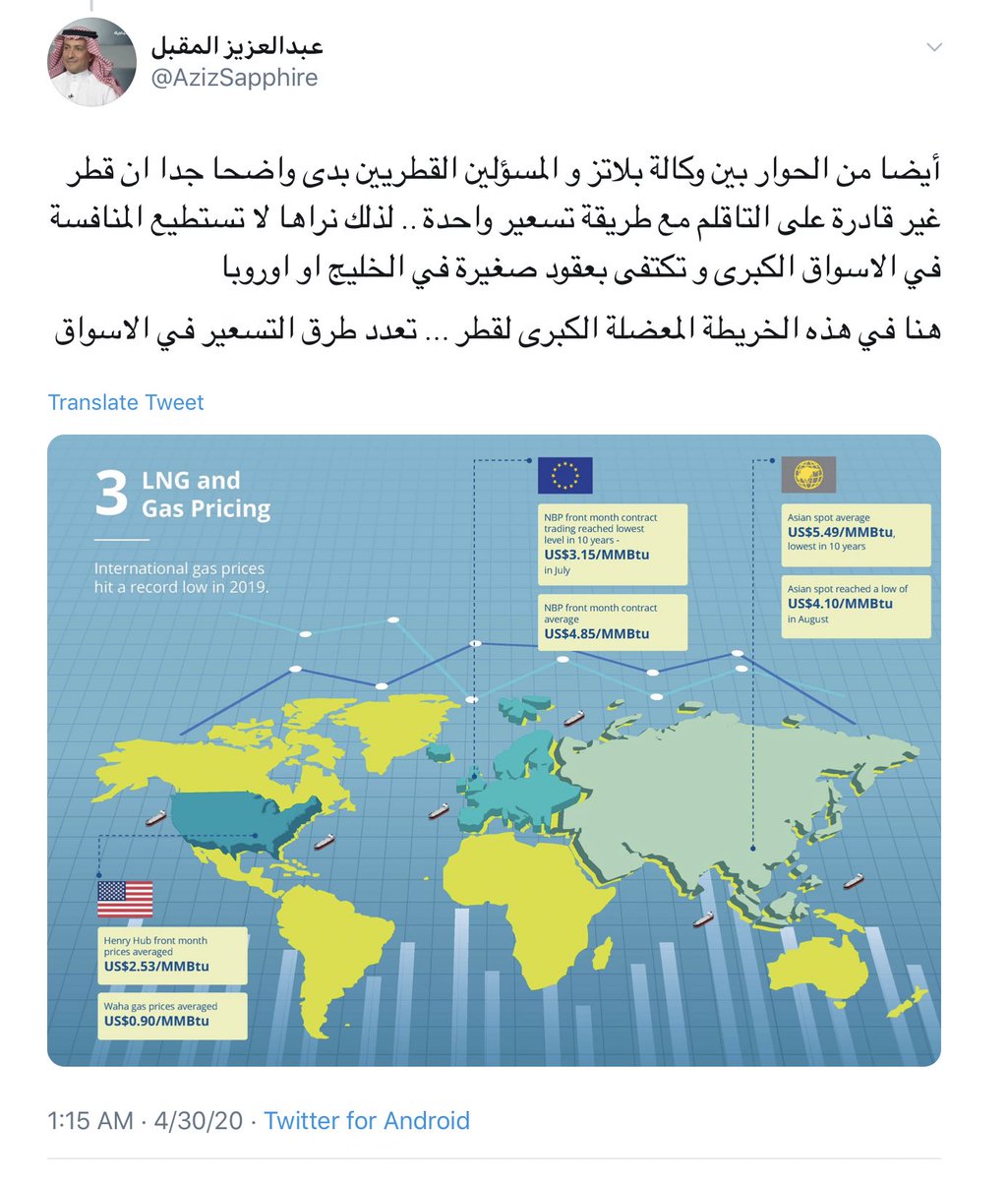 ▪️عندما تقرا المصادر التي وضعها @AzizSapphire في سلسلته عن الغاز القطري تكتشف انها مغلوطه ووضعها بطريقة خاطئة كوضع السم في العسل اما لعدم فهمه للمعلومة او تعمد ذلك لغاية في نفسه او تمني.