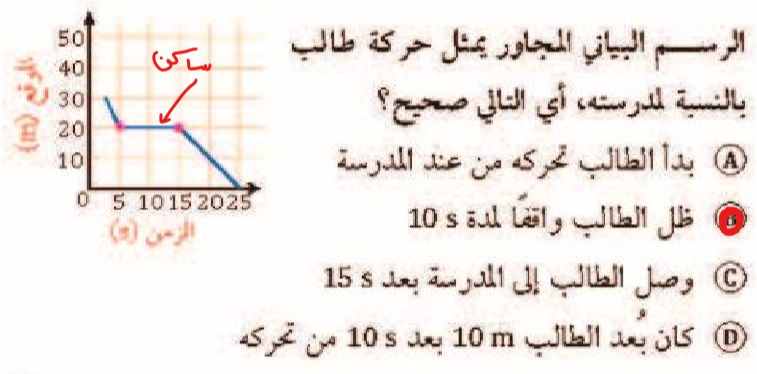 ب) تحرك إبراهيم 8 متر في الشرق ثم هبط 6 متر للجنوب إن إزاحة إبراهيم = 10 متر ومسافته 14متر