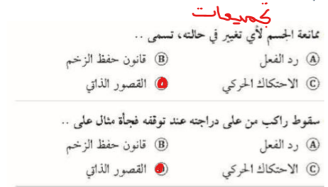 ج : القصور الذاتي يقصد به ممانعة الجسم لحدوث أي تغير في حالته من حيث السكون أو الحركة -----> يأتي ع هيئة تعريف