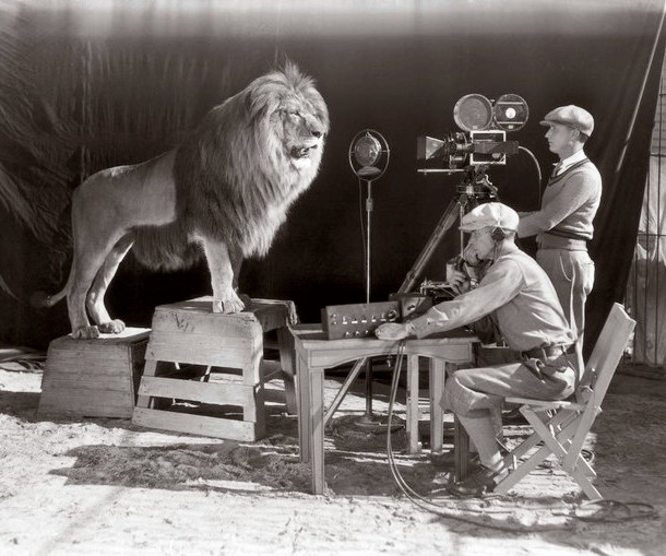 تصوير المشهد الأفتتاحي لـ شركة الأنتاج السينمائي الشهيره MGM عام 1928.