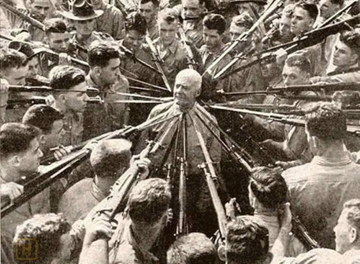 العقيد أنتوني جوزيف وهو خبير قتال يدوي في عام 1943 وهو يأمر متدربين من المشأة البحريه بمحاولة قتله.