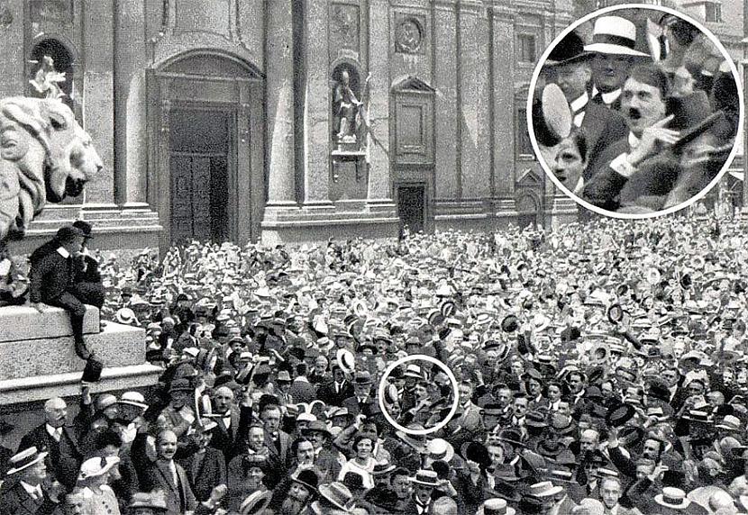 صوره نادره لـ هتلر وهو في ربيع شبابه وهو يحيي ببداية الحرب العالميه الأولى عام 1914.