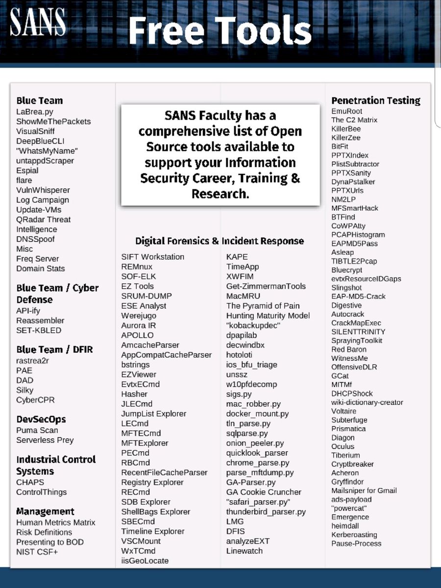 مجموعة للأدوات المجانية في الإستجابة للحوادث الرقمية، التحليل الرقمي، وإختبار الإختراق