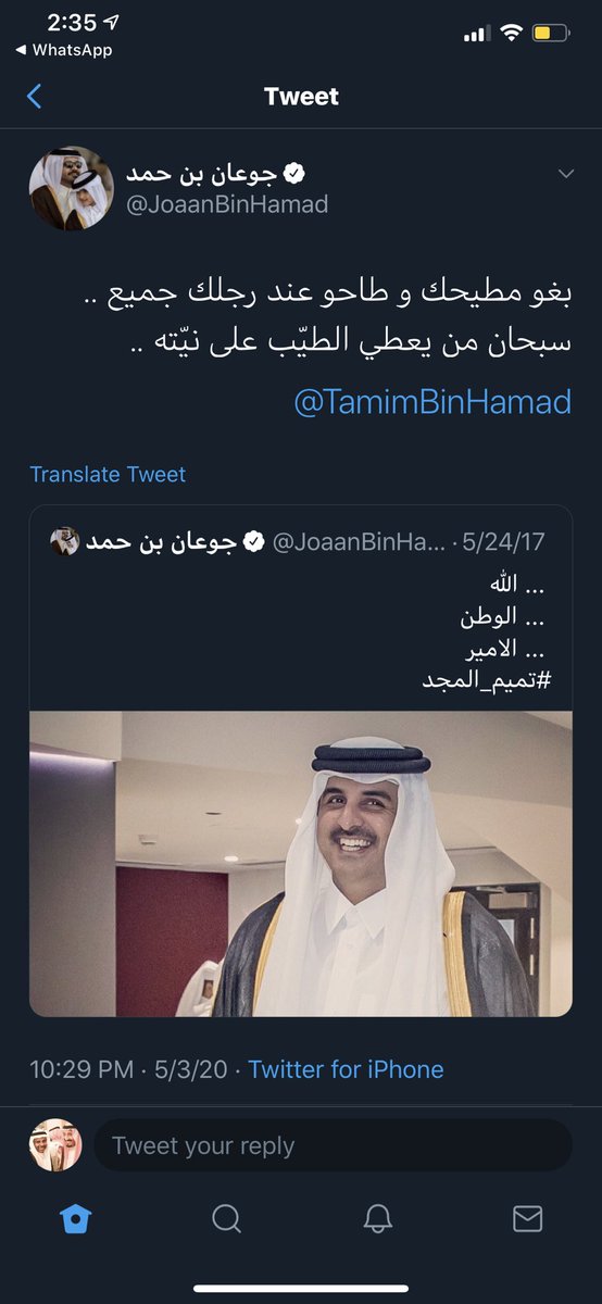 يبدو ان المعركة انتقلت من شوارع وقصور #الوكرة إلى منصة #تويتر بين كبار اللاعبين على مسرح #الدوحة. #جوعان_بن_حمد يتصدى ل #حمد_بن_جاسم والضرب تحت الحزام. يبدو ان الوساطة التركية والضغوط الأمريكية والترتيبات الاسرائيلية لم تهدأ الخواطر بعد! فاصل ونواصل .. ابقوا معنا! #إنقلاب_في_قطر